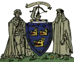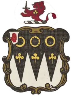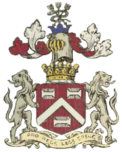 Crest: The tower of the Church of St. Catherine at Honfleur in France with buttresses all Or. Motto: Fiat voluntas dei (May God's will be done)[24] |