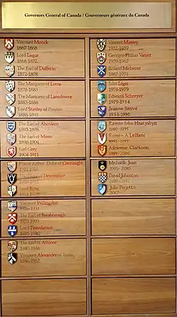 - ^ "Former Governors General". www.gg.ca. 22 September 2017. Archived from the original on 15 March 2022. Retrieved 7 June 2022.