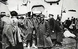 The Russian Army (Russian: Русская армия, romanized: Russkaya armiya),[a] commonly known as the Army of Wrangel (Russian: Армия Врангеля),[b] was a White Army active in South Russia during the Russian Civil War from March to November 1920. It was officially formed on 28 April 1920 from the merger of several White armies, including the Volunteer Army, in a reorganization of the Armed Forces of South Russia. The Army of Wrangel, nicknamed after its commander General Pyotr Wrangel, fought against Bolshevik forces in the Southern Front and the Ukrainian War of Independence. In November 1920, following defeat at the Siege of Perekop and being vastly outnumbered, the Army of Wrangel organized a successful evacuation from Crimea and subsequently dissolved. Veterans of the army were among the founders of the Russian All-Military Union.[2]