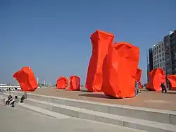 Quinze stated that he intends his installations to serve as modern gathering places. Red Beacon (2010) is located in the Jing'an Sculpture Park in Shanghai.[8][9] He states that his sculptures redefine social space and provide alternative models of interaction.