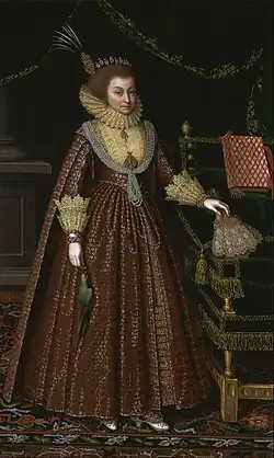 - ^ John Hayward, 'The Arnold Lulls Book of Jewels and the Court Jewellers of Anne of Denmark', Archaeologia, 108 (1986), p. 228: Calendar State Papers Domestic, 1603-1610 (London, 1857), p. 217: Frederick Devon, Issues of the Exchequer (London, 1836), p. 48.