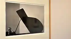 Newman is often credited with being the photographer who articulated and who consistently employed the genre of environmental portraiture, in which the photographer uses a carefully framed and lit setting, and its contents, to symbolize the individual's life and work; a well known example being his portrait of Igor Stravinsky in which the lid of his grand piano forms a gargantuan musical note representative of the melodic structure of the composer's work.[4] Newman normally captured his subjects in their most familiar surroundings with representative visual elements showing their professions and personalities. A musician for instance might be photographed in their recording studio or on stage, a Senator or other politician in their office or a representative building. Using a large-format camera and tripod, he worked to record every detail of a scene.