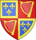 This coat of arms is an adaptation of those of the Marquis Louis VI of Arpajon, lord of the town, which is shown on the right:
