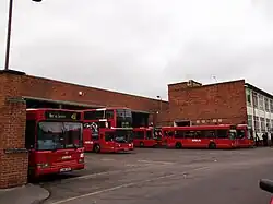 Opened on 18 June 1952, Garston became part of London Country North West in 1986, being included in the sale of the business to Luton & District Transport in 1988 which in turn was rebranded Arriva Shires & Essex.[45] In 1986 it became a London Regional Transport contractor when it began to operate route 142.[46] As part of a decision to consolidate all of Arriva's Transport for London routes with Arriva London, Garston garage was transferred from Arriva Shires & Essex on 1 January 2016.[19][30] It closed on 31 August 2018 coinciding with the expiry of its last Transport for London contracts.[47][48]