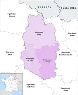 The 3 arrondissements of the Meuse department are:[1]