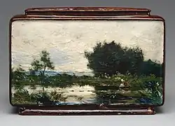 There were also close links with amateur china painting, which had become a very popular hobby, especially for middle-class women, in the same decades.[10] In London, the Regent Street jewellers Howell James & Co. became a leading showplace for both amateur and professional work, organizing exhibitions and competitions.[11]