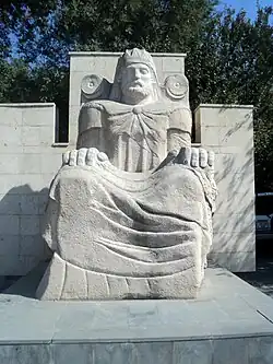 In 1848, the Armenian playwright Srabion Hekimian wrote a play in Classical Armenian titled Artashes ev Satenik (Artashes and Satenik).[63] The 19th-century Armenian poet Bedros Tourian wrote a play about Artaxias titled Ardashes Ashkharhagal (Artashes the Conqueror), which was first performed in 1870. It was written on the basis of Khorenatsi's history.[64] Artaxias has been depicted in painting by Mkrtum Hovnatanian (1836).[47] In 2001, a statue of Artaxias by Vanush Safaryan was erected in the central square of modern-day Artashat.[48]