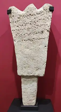 - ^ "These steles bear inscriptions in Aramaic (or more precisely, likely in an Iranian language “encrypted” with Aramaic spellings of individual words—i.e., an Aramaic word is written, but an Iranian word should be read in its place)."[9]
