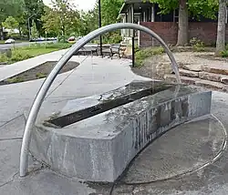 When initially opened, the park was simply called "City Well Park" but was renamed "Artesian Well Park" in 1987, following a "Name the Park" contest held to rename several of Salt Lake City's smaller, often unnamed, parks.[9][10] In 2020, the city made significant upgrades to the park, including rebuilding the water feature as an arch with spigots to accommodate larger water containers.[11][12]
