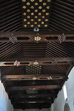 Artesonado or Spanish ceiling is a term for "a type of intricately joined wooden ceiling in which supplementary laths are interlaced into the rafters supporting the roof to form decorative geometric patterns",[1] found in Spanish architecture. It is an example of Mudéjar style.
