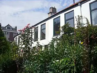 The painters hofjes in the older part of the street and over the years was the residence of numerous notable artists, include Henk Bremmer who lived there from 1902 until his death in 1956. In the middle of the courtyard is a large communal garden, which before World War II was divided so that all houses had their own piece of garden.