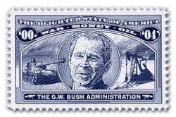 David Krueger's series of pseudo-stamps critiquing the Bush administration, begun in 2001, was on view at the CUE Art Foundation in Chelsea, Manhattan, New York, from April 24 - May 31, 2008.
