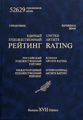- Artists Trade Union of Russia regularly publishes the reference book "United Art Rating" (called "United Artists Rating" before 2012).[3] The reference book "United Art Rating" has been published since 1999 as a periodical reference book, registered as mass media. As of 2016, it has stood 22 printed editions, total number of printed copies is more than 90000.[4] The electronic version is also available.[5] On January 1, 2016, United Art Rating included the names, dates of life and rating categories of 58965 artists (painters, graphic and poster artists, theatre decorators, batik painters, illustrators, animators, sculptors, jewelers, ceramists, authors of installations etc.).