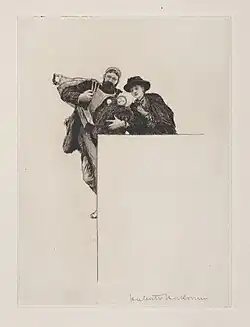 A "working proof" or "trial proof" is an impression of a print taken in the printmaking process to see the current printing state of a plate while the plate (or stone, or woodblock) is being worked on by the artist.[1] A proof may show a clearly incomplete image, often called a working proof or trial impression, but in modern practice is usually used to describe an impression of the finished work that is identical to the numbered copies.[2] There can also be printer's proofs which are taken for the printer to see how the image is printing, or are final impressions the printer is allowed to keep.[3]