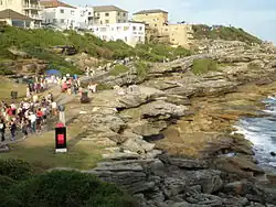 The visual arts have a long history in Australia, dating back around 30,000 years, and examples of ancient Aboriginal rock art can be found throughout the continent, notably in national parks such as the UNESCO-listed sites at Uluru and Kakadu National Park in the Northern Territory, and also within protected parks in urban areas such as Ku-ring-gai Chase National Park in Sydney.[6] In the mid-twentieth century, the landscape paintings of Albert Namatjira were popular and received national and international acclaim.[7] Since the 1970s, contemporary Indigenous Australian artists have used acrylic paints in styles such as that of the Western Desert Art Movement, which leading critic Robert Hughes saw as "the last great art movement of the 20th century".[8] Art is important both culturally and economically to Indigenous society; art critic Sasha Grishin concluded that central Australian Indigenous communities have "the highest per capita concentrations of artists anywhere in the world".[9] Contemporary artists whose work has been exhibited internationally such as at the Venice Biennale, include Rover Thomas and Emily Kngwarreye, while designs were commissioned from several nationally recognised artists in 2006 for the new Musée du quai Branly buildings. The artists included Paddy Bedford, John Mawurndjul, Ningura Napurrula, Lena Nyadbi, Michael Riley, Judy Watson, Tommy Watson and Gulumbu Yunupingu.[10][11]