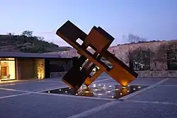 ´MU´ refers to a blank sheet of paper, a symbol of openness, without prejudices or preconceived ideas, paying homage to Japan and its people. "Berned's sculptures are a combination of triangular iron planes welded together in different configurations and angles. The pieces are endowed with a strange duality. They are like sharp leaves that cut through the earth, but they also cause a feeling of freshness, like new leaves sprouting from their womb. It would seem that they are creations contrary to nature that nevertheless merge with it. They convey a very Western sense of strength, but at the same time they are endowed with the subtlety and sensitivity of origami," Toyo Ito about Berned´s sculptures for ´MU´.[7]