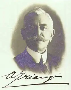 Arturo Corrado Luigi Triangi, Conte di Maderno e Laces (18 February 1864 in Fiesole – 3 March 1935 in Florence) was an Italian admiral. He was also a member of the Senate of the Kingdom of Italy and briefly Minister of the Navy in the Boselli government. A count of the Holy Roman Empire, his title was officially recognised in Italy by a ministerial decree of 8 April 1925.