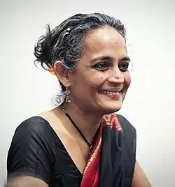 Suzanna Arundhati Roy (Bengali pronunciation: [orundʱoti rae̯]; born 24 November 1961)[1] is an Indian author best known for her novel The God of Small Things (1997), which won the Booker Prize for Fiction in 1997 and became the best-selling book by a non-expatriate Indian author.[1] She is also a political activist involved in human rights and environmental causes.[6] She was the winner of the 2024 PEN Pinter Prize, given by English PEN,[7] and she named imprisoned British-Egyptian writer and activist Alaa Abd El-Fattah as the "Writer of Courage" with whom she chose to share the award.[8]