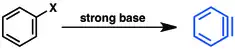 Early routes to benzyne involved dehydrohalogenation of aryl halides: