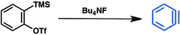 Another method, with wide applicability, is based on trimethylsilylaryl triflates.[14][15] Fluoride displacement of the trimethylsilyl group induces elimination of triflate and release of benzyne: