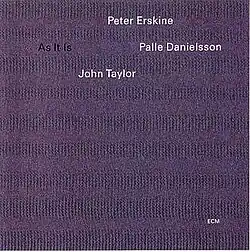 As It Is is an album by drummer Peter Erskine, which was recorded in September 1995 and released on ECM the following year. The trio features pianist John Taylor—who wrote most of the album—and bassist Palle Danielsson.[1]
