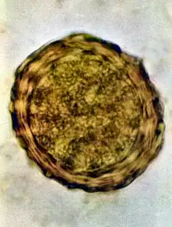 A. lumbricoides eggs are extremely resistant to strong chemicals, desiccation, and low temperatures. The eggs can remain viable in soil for months or even years.[9] Eggs of A. lumbricoides have been identified in coprolites in the Americas, Europe, Africa, the Middle East, and New Zealand, the oldest ones being more than 24,000 years old.[12]