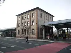 Aschaffenburg Hauptbahnhof is the main station of Aschaffenburg in the German state of Bavaria. It is located on the busy Ruhr– Frankfurt–Nuremberg–Munich/Vienna rail corridor. Deutsche Bahn classifies it as a category 2 station.[2] It forms the boundary between the city centre and the district of Damm.