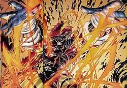 Ash is an American comic book character created by Joe Quesada and Jimmy Palmiotti, and published by Event Comics, about a firefighter who gains superpowers from a time-displaced regeneration device from a possible apocalyptic future.