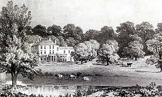![]() Ashbourne Hall from its Park (c. 1800) | |