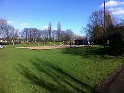 The park is located close to Woodside tram stop, where Tramlink services the park. It is on the junction of Lower Addiscombe Road and Spring Lane. The park covers an area of 18.5 acres (7.5 ha)[1] and includes a village green, pétanque terrain, bowling green, tennis and basketball courts and a café.