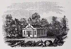 In September 1847, the Seneca suffered an epidemic of typhoid, in which approximately 70 of them died.[19] The Wrights began taking in the orphaned children left behind by the outbreak. By 1854, the number of orphans and destitute children in the reserve had exceeded fifty. Due to the lack of any charitable institution to assist with this, the Wrights appealed to the Society of Friends, the New York State Legislature, and businessman Philip E. Thomas in order to fund the establishment of an orphanage.[20] Thomas had previously voiced his support of the Seneca cause after the Wright and the Quakers had helped the Seneca people retain some of their land in the compromise treaty.[21] Thomas' name was used for the Asylum due to his financial support towards its cause.[2]
