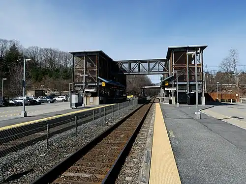 - ^ Saltzman, Jonathan (August 11, 2002). "New stations popular with commuters: Town's rail stop will open Aug. 24". Boston Globe. p. 111 – via Newspapers.com.