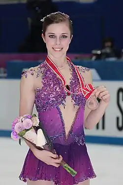 Ashley Elisabeth Wagner (born May 16, 1991) is an American former competitive figure skater. She is the 2016 World silver medalist, a 2014 Olympic bronze medalist in the team event, the 2012 Four Continents champion, a three-time Grand Prix Final medalist (1 silver, 2 bronze), a thirteen-time Grand Prix medalist (5 gold, 3 silver, 5 bronze), and a three-time U.S. national champion (2012, 2013, and 2015). Wagner competed at the 2014 Winter Olympics in Sochi, Russia, and placed 7th. At the junior level, Wagner is a two-time World Junior bronze medalist (2007, 2009), the 2006-07 Junior Grand Prix Final silver medalist, a two-time Junior Grand Prix medalist (2 gold), and the 2007 U.S. junior bronze medalist.