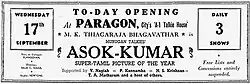 - ^ "Asok-Kumar". The Indian Express. 17 September 1941. p. 5. Retrieved 4 February 2020.