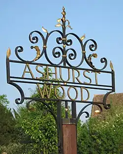Ashurst Wood is a village and civil parish in the Mid Sussex District of West Sussex, England. It is 1 mile (2 km) to the southeast of East Grinstead, just off the A22 arterial road. In 2001, the population was 1,771, increasing to 1,833 at the 2011 Census.[2] Ashurst Wood is within the High Weald Area of Natural Beauty and has a Site of Special Scientific Interest (SSSI) inside its boundaries.[3] The village has a history of agriculture and farming, and contains a church, village hall, primary school, two public houses, a general shop, post office and several small business premises. There is an independent school on the boundary of the village, called Brambletye School, and a former one, Stoke Brunswick School (the former junior school of British Prime Minister Winston Churchill), which closed in 2009.[4] Bus routes run through the village with destinations of East Grinstead, Crawley, Haywards Heath, Tunbridge Wells and Brighton.