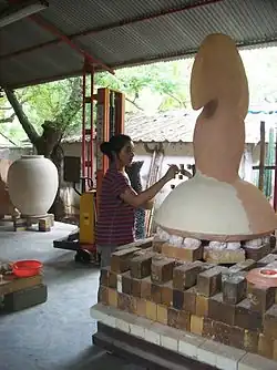 Born in Puttur, Karnataka, India Ashwini Bhat has a master's degree in literature from Bangalore University. She studied classical dance (Bharatanatyam) for seventeen years and traveled internationally as a professional dancer in the Padmini Chettur Dance Company before beginning a career as a visual artist. Coming from dance to sculpture, Bhat sees a close relationship between her own body and the sculptural body she creates.[4]