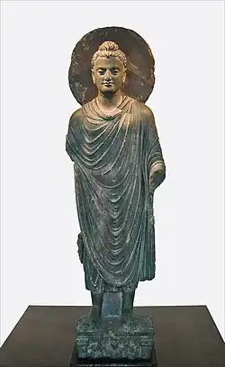 Dated to the 2nd century, this sculpture is one of the oldest human representations of the Buddha. It is representative of Gandharan art, which developed from the 1st to the 3rd century in a region located between Afghanistan and Pakistan. A true cultural and commercial crossroads, Gandhara created original works synthesizing Indian and Greco-Roman art.