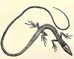 Takydromus sexlineatus, the Asian grass lizard, six-striped long-tailed grass lizard, or long-tailed grass lizard, is an arboreal, diurnal species of lizard. The tail length is usually over three times the body (snout to vent) length in this species.[2]