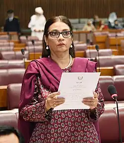 She was re-elected to the 15th National Assembly of Pakistan on 17 August 2022 due to the resignation of Shireen Mazari.[17][18] It was misreported that the acceptance of Mazari's resignation along with 10 others were suspended by the Islamabad High Court on 9 September 2022.[19][20] The Islamabad High Court on 12 September 2022 clarified that only one resignation had been suspended which is of Abdul Shakoor Shad.[21][22][23]