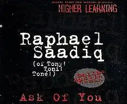 "Ask of You" is a song by American singer Raphael Saadiq, released as a single from the Higher Learning soundtrack.[1] It was Saadiq's biggest solo hit, peaking at number 19 on the Billboard Hot 100 and number 2 on the U.S. Billboard Hot R&B/Hip-Hop Songs chart.[2]
