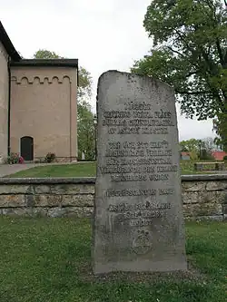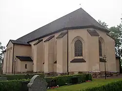 Askeby Church (Swedish: Askeby kyrka) was built together with a nunnery during the second half of the 12th century and was used until about 1530 by both the parish and the abbey. The sacristy was probably built in the late 15th or early 16th century. In 1609 the church burned down and the tower was almost completely destroyed. Only two floors of the original tower remain. The western part of the nave underwent major rebuilding 1876-1877. The tower rooms regained their medieval character in 1913. In 1951, the interior was restored, the exterior in 1970. Today the church serves the parish of Askeby in the Diocese of Linköping. During 1955, a memorial stone was erected on site to the memory of Askeby Abbey.[4]