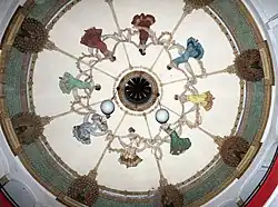 The building combines elements of Romanesque Revival and neoclassicism. The painting of the ceiling of the auditorium shows the tendencies of the Art Nouveau. Indeed, the roof has paintings by Saverio Fresa with dance images. It was one of the most famous buildings in Italian Asmara.