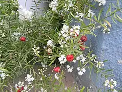 Asparagus racemosus (satavar, shatavari, or shatamull, shatawari) is a species of asparagus native from Africa through southern Asia, including the Indian subcontinent, to northern Australia.[2][3] It grows 1–2 m (3 ft 3 in – 6 ft 7 in) tall and prefers to take root in gravelly, rocky soils high up in piedmont plains, at 1,300–1,400 m (4,300–4,600 ft) elevation.[4] It was botanically described in 1799.[1] Because of its multiple uses, the demand for Asparagus racemosus is constantly on the rise. Due to destructive harvesting, combined with habitat destruction, and deforestation, the plant is now considered "endangered" in its natural habitat.
