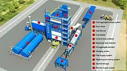 An asphalt plant is a plant used for the manufacture of asphalt, macadam and other forms of coated roadstone, sometimes collectively known as blacktop or asphalt concrete.
