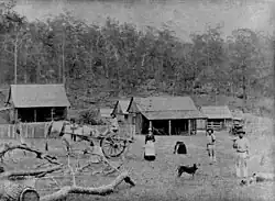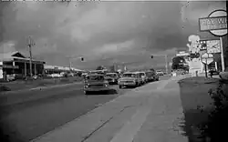 Little Cabbage-tree Creek State School opened on 6 August 1890. Before it was built, students would infrequently attend classes at the schools in Bald Hills or Zillmere. Initial sites for the new school were not approved by the Government before finally accepting the location on the corner of Maundrell Terrace and Horn Road. In 1897, the school was renamed Aspley State School.[9] In the latter part of the 19th century, Aspley was essentially a farming district. Additional industries were established to support the farming industry. In the 1880s, John Smith Booth established a bone mill and sawmill on Little Cabbage Tree Creek and Albany Creek Road. It later relocated to the current location of the former Aspley Acres Caravan Park and finally closed in 1932. In 1888, Huttons Pty Ltd established a meat processing plant in nearby suburb Zillmere. It contributed greatly to the local economy of Aspley, providing an alternative employment for farmers during poor seasons. A blacksmith operated on the northern corner of Gympie Road and Albany Creek Road until the 1920s. Several slaughter houses operated along Little Cabbage Tree Creek.