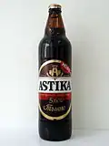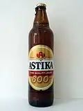 Astika is a Bulgarian beer brand made in the city of Haskovo (Bulgarian: Астика). The Astika Brewery was established in 1980, and in 1995 was bought by Kamenitza, itself currently owned by Molson Coors. It has two brands – Astika Light (originally Astika Lux) and Astika Dark (5.6%, sold in winter). As of 2012, Astika is sold in 600 ml bottles, with a pull-off top, as well as 500ml cans as of 2017 that are priced at 1.05 лв Bulgarian lev