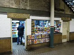 On the southbound side, the station has an entrance and windows into a store. The heavy brick-faced square columns on the southbound platform support the store above.[4]: 4–5 The store was originally constructed in 1868 as an A. T. Stewart, but it had become a Wanamaker's by the time the station was constructed and opened.[4]: 4–5 [9]: 94 The Wanamaker's store was closed by 1954. It served as Kmart location from November 1996 to July 2021.[67][68] A Wegmans location opened within the Kmart space in late 2023.[69]