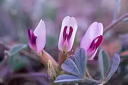 It is a perennial herbaceous plant,[3] with pinnate leaves 1.5–15 cm long with 3–15 leaflets, each leaflet 5–20 mm long. The flowers are pink-purple in color; flowering is between April and June. The fruit is a pod 13–28 mm long, containing a single seed.