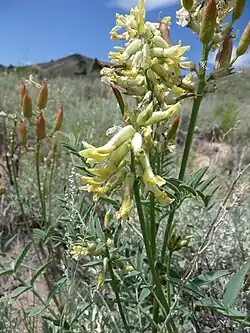Astragalus scaphoides, the bitterroot milkvetch, is a flowering plant in the family Fabaceae, the third-largest plant family in the world. It is found only in a small area of southwest Montana and adjacent parts of Idaho and as far west as Prineville, Oregon. It grows on shallow, south-facing slopes, in semi-arid sage scrub.