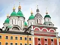 Astrakhan is the archiepiscopal see of one of the metropolitanates and (as Astrakhan and Yenotayevka) eparchies of the Russian Orthodox Church, its only other suffragan being Akhtubinsk. There is also a Catholic community, served by the Church of the Assumption of Mary (Astrakhan). There is also a substantial Muslim population made up of Astrakhan Tatars and other Muslims.[37] At 1777 the white Mosque was built,[38] and the Baku Mosque was built in 1907–1909.